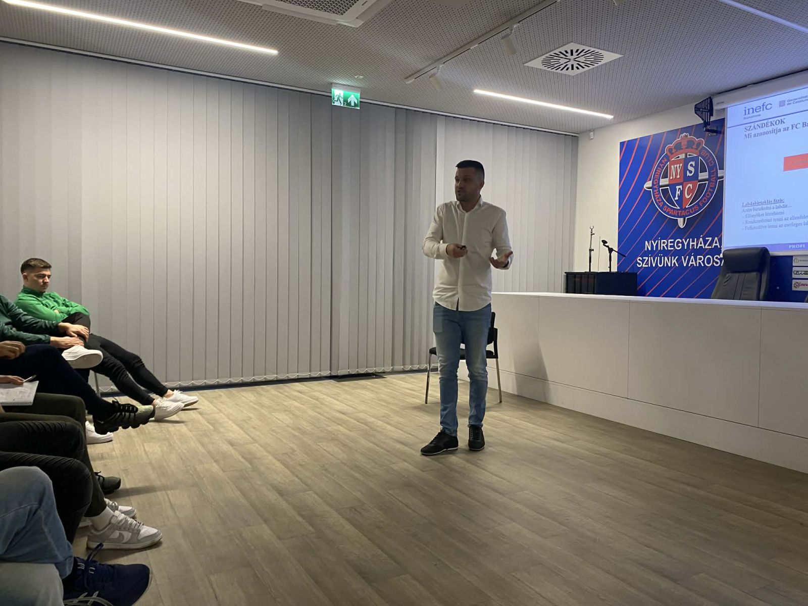 Nagy örömmel fogadtuk Berndt Andrást, aki Körzetközpontjaink és TK-partnereink számára mutatta be az FC Barcelona világszerte elismert játékelméleti és képzési módszertanát. Az előadó 2021–2025 között két mesterképzést végzett a Barca Innovation Hub, az FC Barcelona és a Katalán Testnevelési Egyetem közös programjában, melynek során személyesen találkozhatott többek között Joan Vilàval, az akadémia vezetőivel, valamint Xavi és Luis Enrique stábtagjaival.